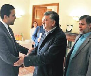 اٹلی: پاکستانی سفارتخانہ روم میں ہونے والے تجارتی سیمینار میں شرکت کیلئے پاکستانی نثزاد اطالوی بزنسمین چوہدری فیصل محمود چیچی، چوہدری قیصر بشير، چوہدری شبیر ناپولی اور چوہدری آصف حسن کی آمد پر ڈپٹی ہیڈ آف مشن تنویر احمد ان کا استقبال کر