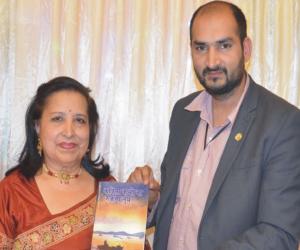 برمنگھم (نمائندہ خصوصی)معروف بھا رتی شاعر ہ سورن تلواڑ اپنی شاعری کی کتاب نوجوان صحافی و معروف کالم نگا ر ایس ایم عرفان طاہر کو ہائی فیلڈ کمیونٹی سنٹر میں پیش کر رہی ہیں اس موقع پراستا ذالا شعراء اور 129 کتب کے خالق پروفیسر ڈاکٹر مظفر حنفی بھی ان